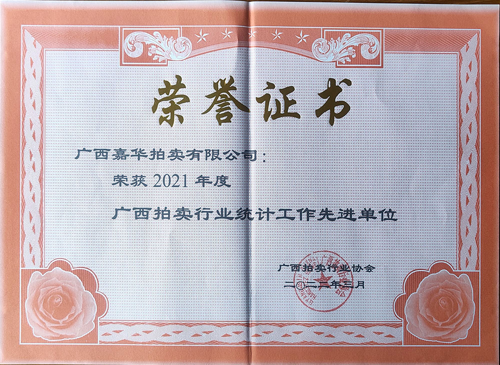 2022年度廣西拍賣行業(yè)統(tǒng)計(jì)工作先進(jìn)單位 -