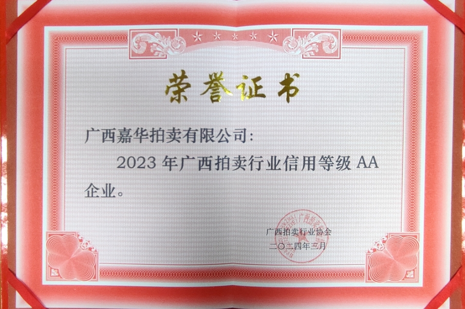 廣西拍賣行業(yè)信用等級(jí)AA企業(yè) -
